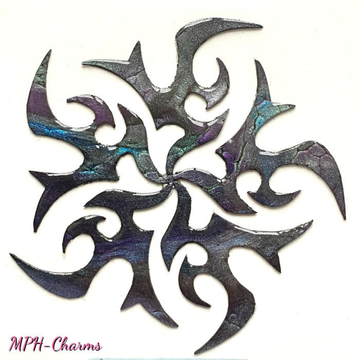 Three dimensional decal/sticker cut out of thin sheet of acrylic paint and coated with UV resin for more relief-like appearance. They have strong adhesive sticker coating on the backside. A perfect choice for making your cell phone cover etc. to stand out.